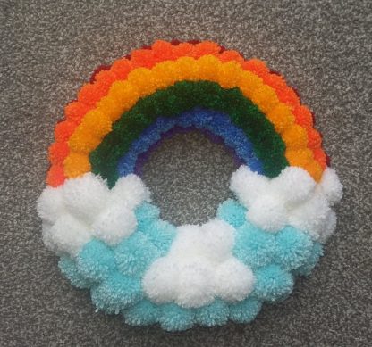Rainbow & Clouds Pom Pom Wreath